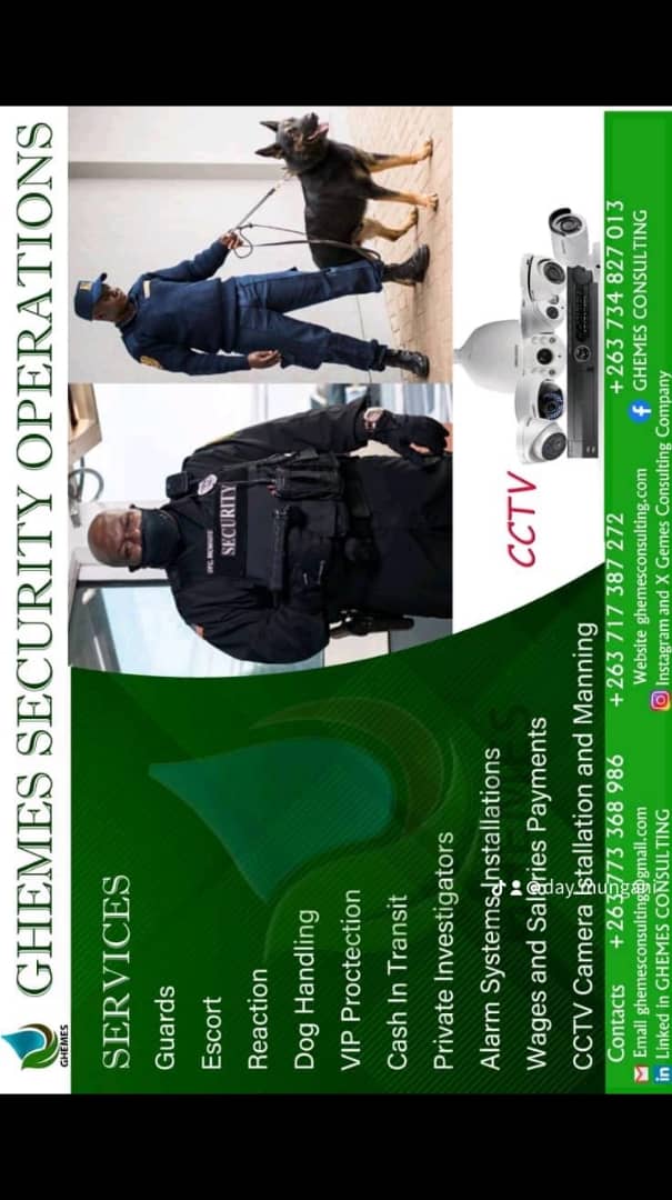 At Ghemes Consulting Company we provide security services to companies and individuals. We provide guards, we install alarm systems and CCTVs, we also provide private investigators and offer dog handling services. We also monitor CCTVs for companies. We also offer Reaction services and
